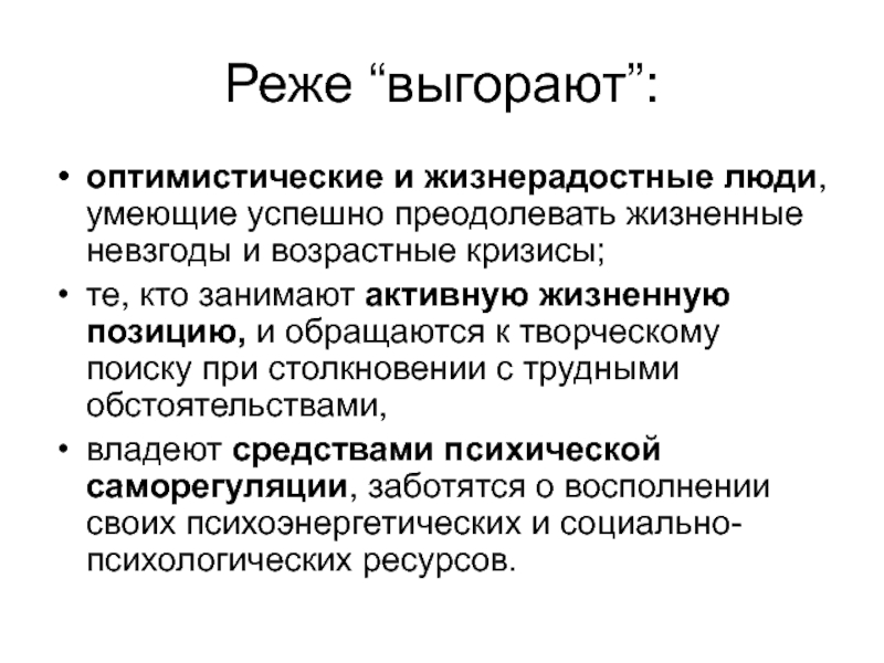 Слайд 19Реже “выгорают”: