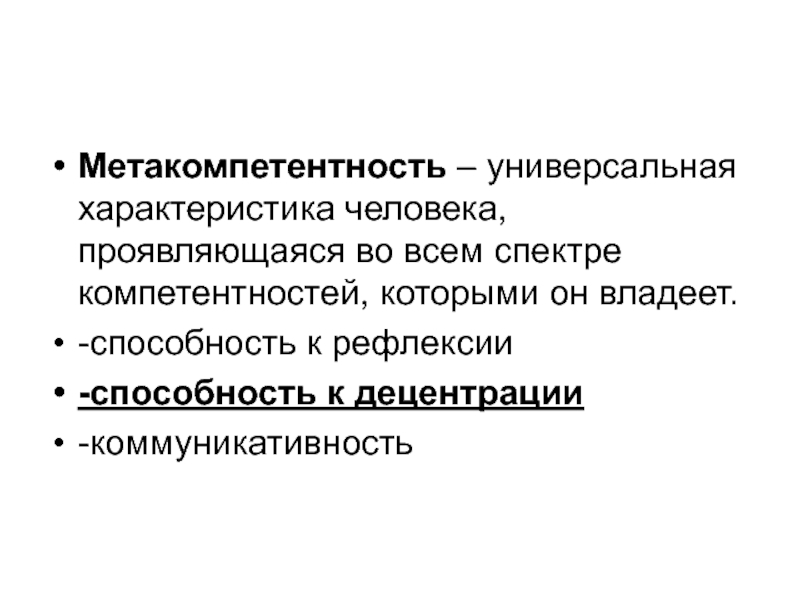 Метакомпетентность – универсальная характеристика человека, проявляющаяся во всем спектре компетентностей, которыми