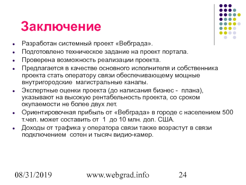 Ориентировочная прибыль от «Вебграда» в городе с населением 500 т.чел. может составить от 1 до 10 млн. дол. США.