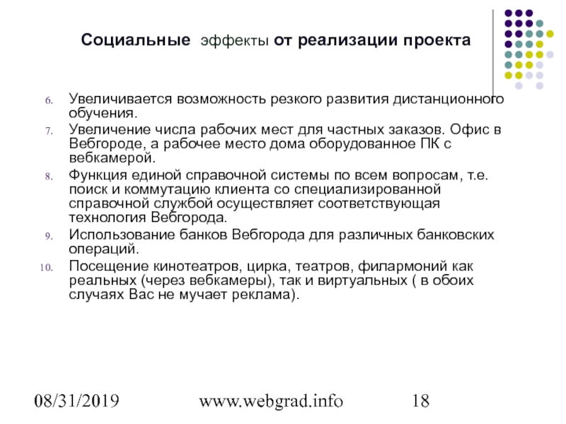 Использование проекта для резкого расширения Интернет-услуг. В результате чего происходит существенное повышение трафика у всех операторов и провайдеров, а также расширения рынка персональных компьютеров.