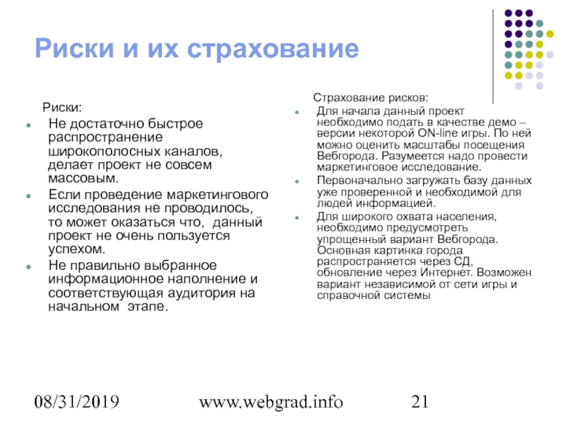 Если проведение маркетингового исследования не проводилось, то может оказаться что, данный проект не очень пользуется успехом.