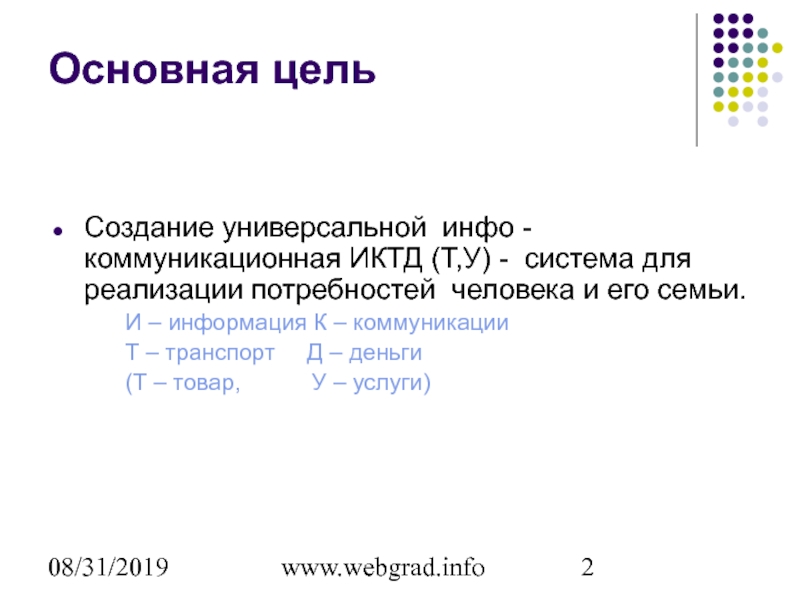 Создание универсальной инфо -коммуникационная ИКТД (Т,У) - система для реализации