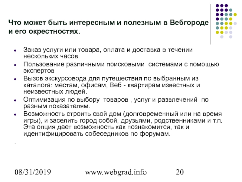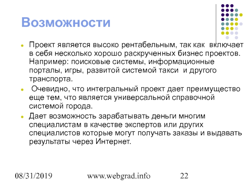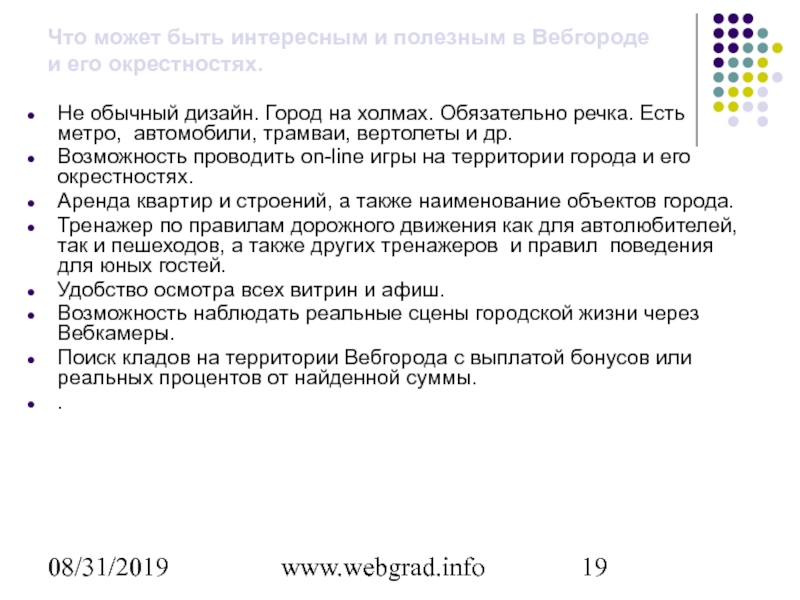 Доходы от продаж и поддержки аналогичных Вебгородов в другие города России и СНГ.