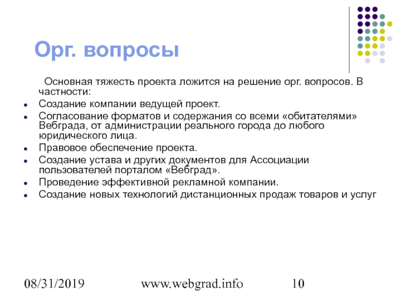 Согласование форматов и содержания со всеми «обитателями» Вебграда, от администрации реального города до любого юридического лица.