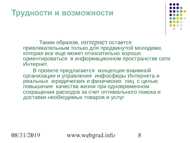 образом, интернет остается привлекательным только для продвинутой молодежи, которая все еще может относительно хорошо ориентироваться в информационном пространстве сети Интернет.