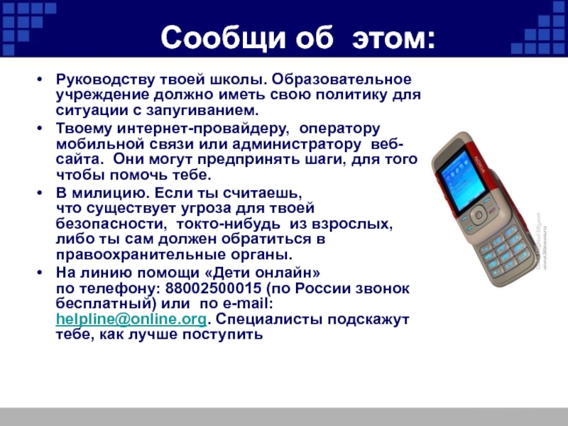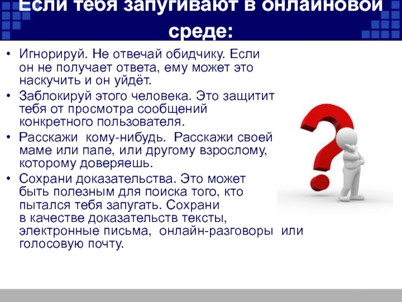Слайд 23Если тебя запугивают в онлайновой среде: