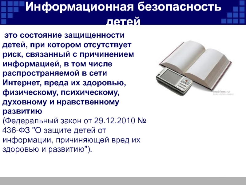 Федеральный закон № 436-ФЗ «О защите детей от информации, причиняющей