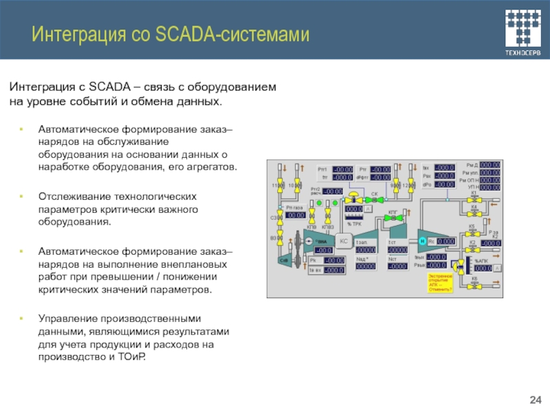 Автоматическое формирование заказ–нарядов на обслуживание оборудования на основании данных о наработке оборудования, его агрегатов.