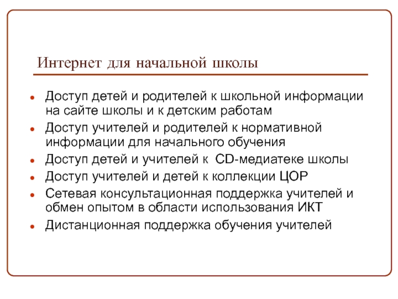 Доступ учителей и родителей к нормативной информации для начального обучения
