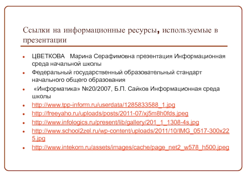 Слайд 16Ссылки на информационные ресурсы, используемые в презентации