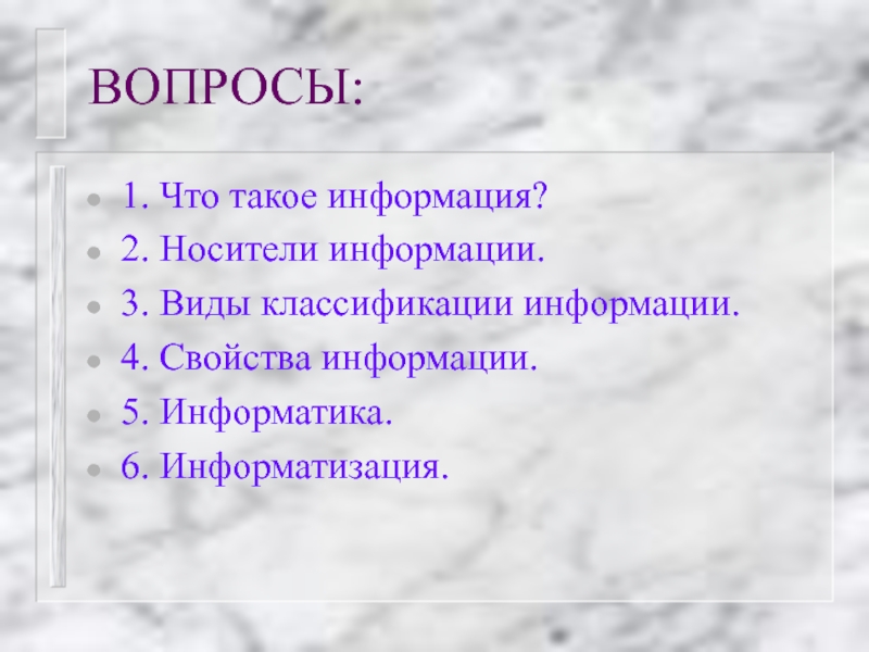 Сведения об окружающем мире и проте-кающих в нем процессах