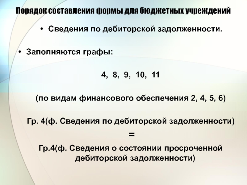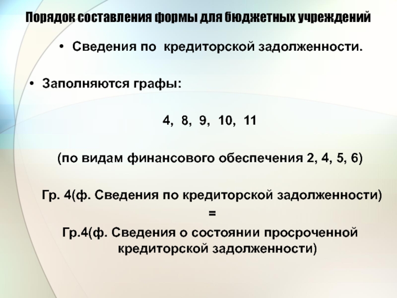 Слайд 4Порядок составления формы для бюджетных учреждений