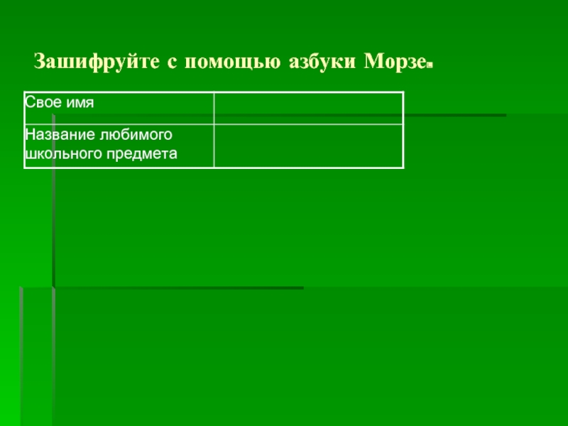 Слайд 14Зашифруйте с помощью азбуки Морзе.