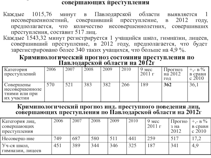 Криминологический прогноз состояния преступления по Павлодарской области на 2012г