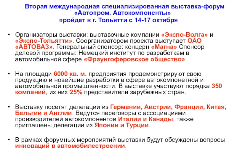 автомобильной отрасли Поволжского региона