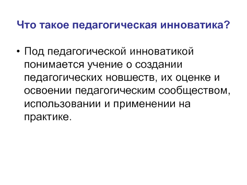 педагогических новшеств, их оценке и освоении педагогическим сообществом, использовании и применении на практике.