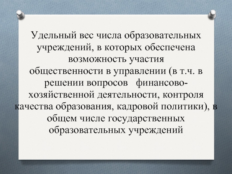 в управлении (в т.ч. в решении вопросов финансово-хозяйственной деятельности, контроля качества образования, кадровой политики), в общем числе государственных образовательных учреждений