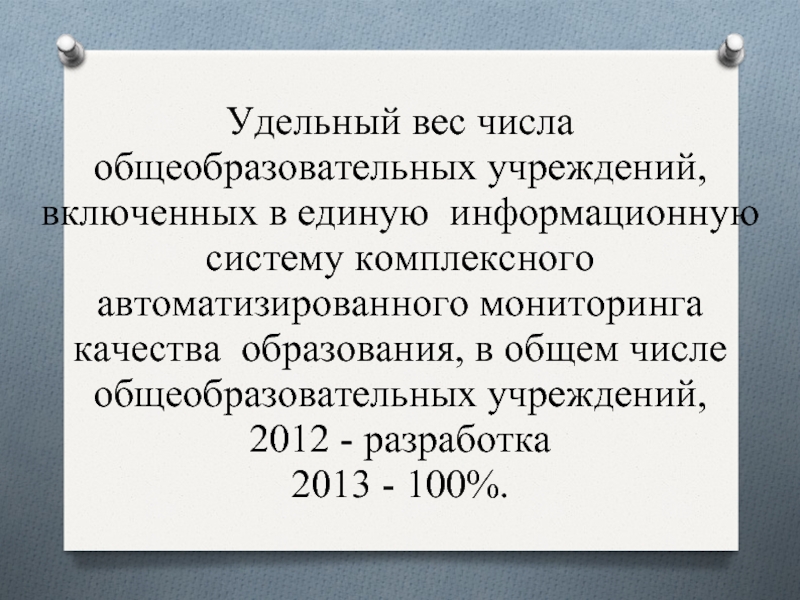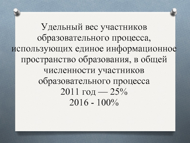 Слайд 7Удельный вес участников образовательного процесса, использующих единое информационное пространство образования, в