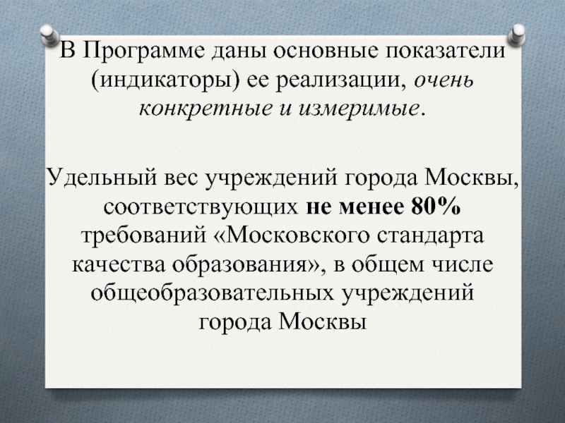 Слайд 4В Программе даны основные показатели (индикаторы) ее реализации, очень конкретные и