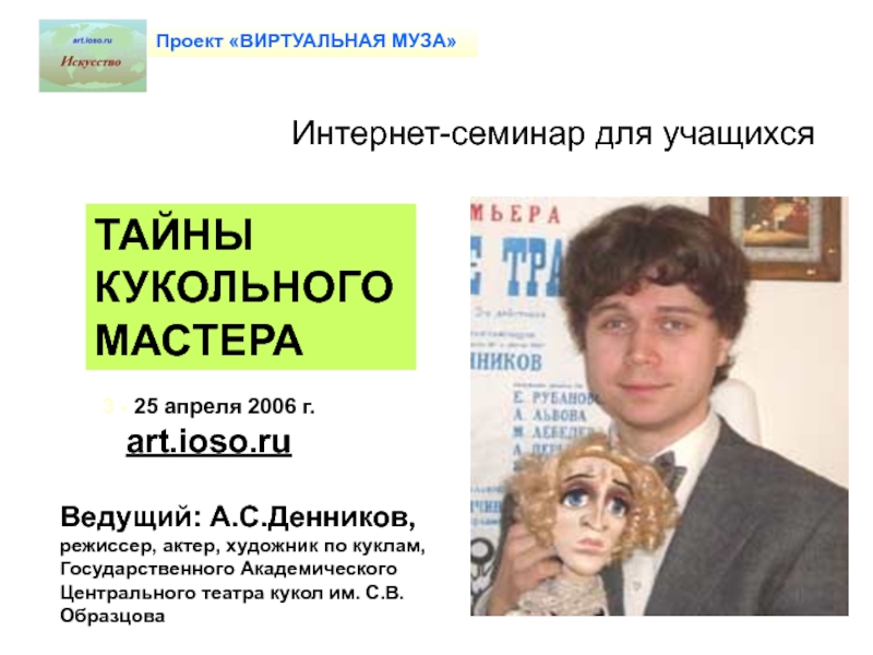 А.С.Денников, режиссер, актер, художник по куклам, Государственного Академического Центрального театра кукол им. С.В.Образцова