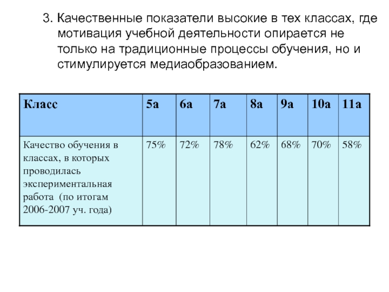 Слайд 293. Качественные показатели высокие в тех классах, где мотивация учебной деятельности