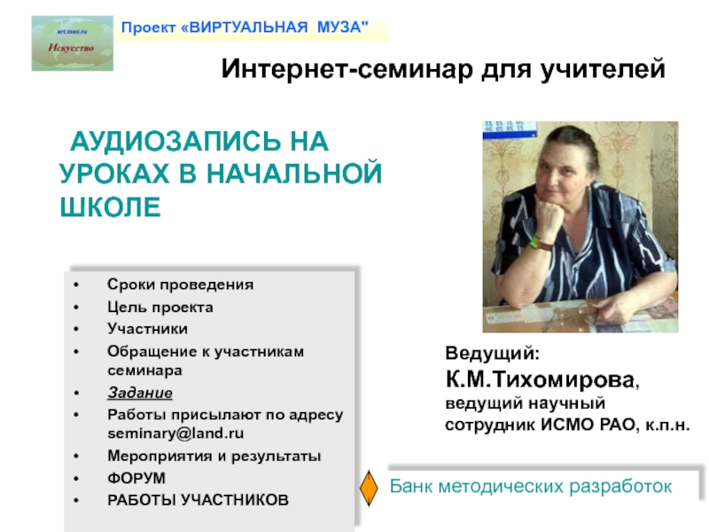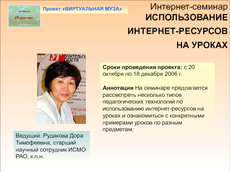 Ведущий: Рудакова Дора Тимофеевна, старший научный сотрудник ИСМО РАО, к.п.н.