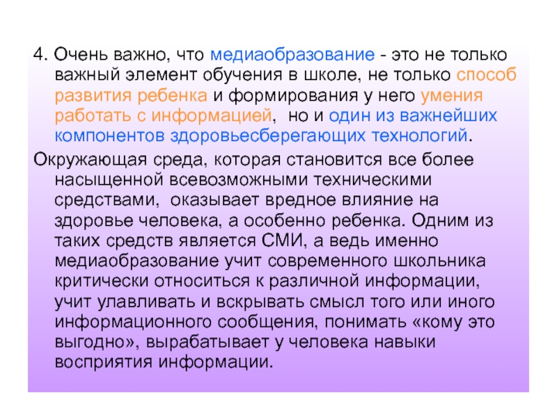 Слайд 304. Очень важно, что медиаобразование - это не только важный элемент
