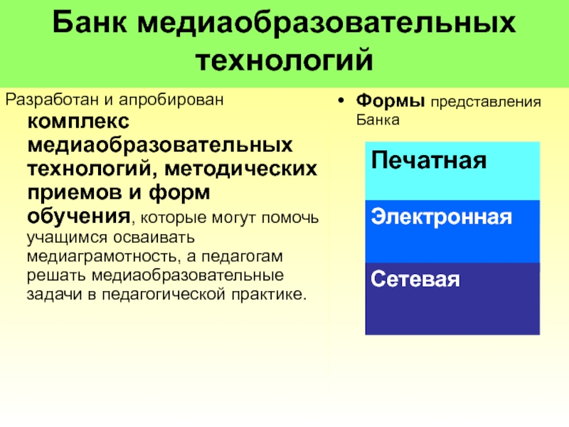 Введение медиаобразовательных технологий в учебный процесс должно:
