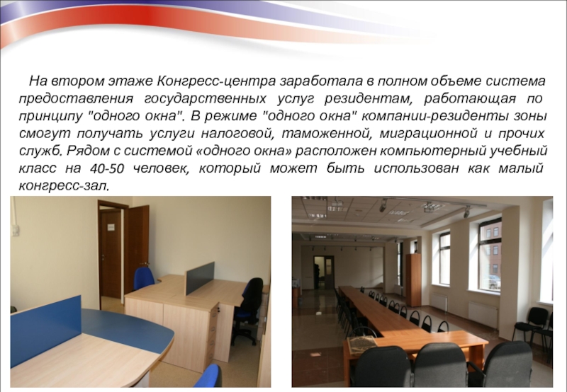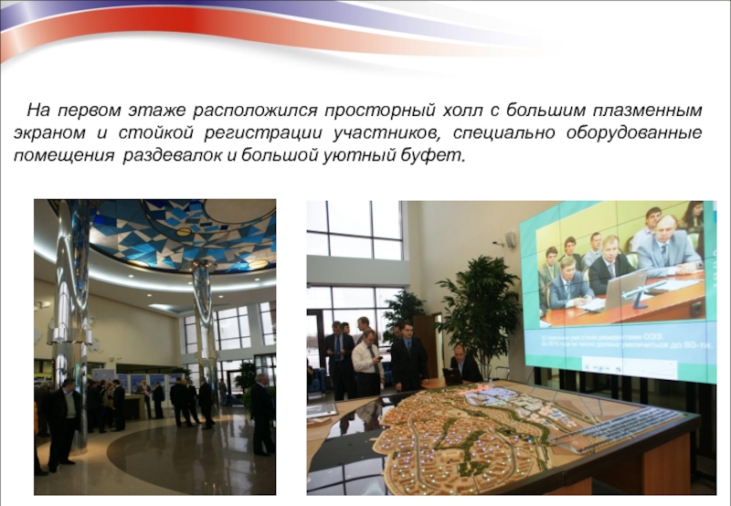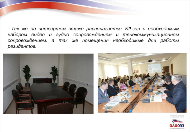 На четвертом этаже расположился большой конференц - зал на 350-400 мест с аудио и видео сопровождением и системой сурдоперевода на 4 языках.
