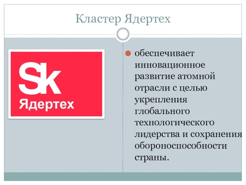 обеспечивает инновационное развитие атомной отрасли с целью укрепления глобального технологического