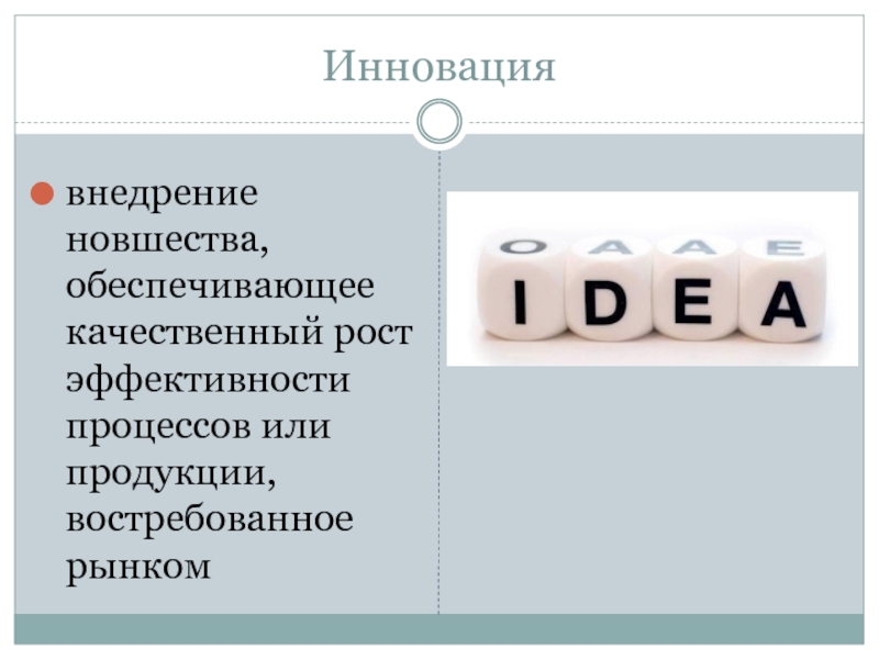 внедрение новшества, обеспечивающее качественный рост эффективности процессов или продукции, востребованное рынком