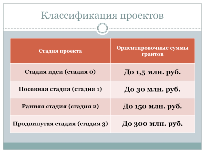 Объём выделяемого финансирования и требования к проекту зависят от стадии, на которой находится проект.