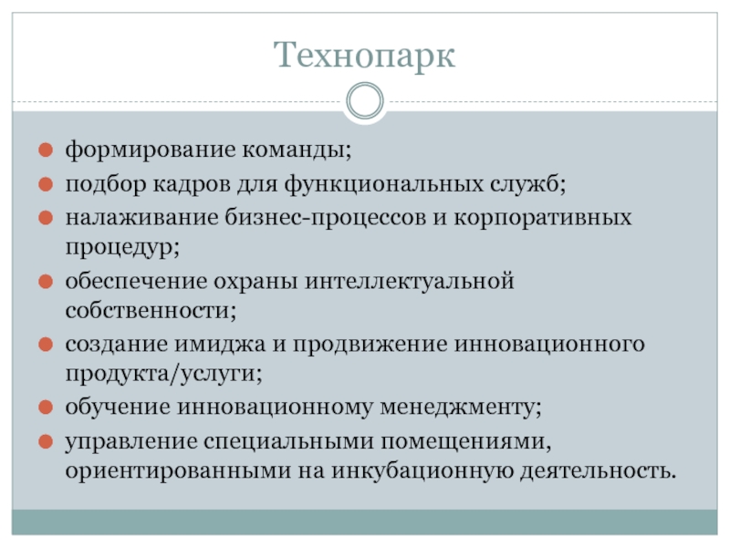 управление специальными помещениями, ориентированными на инкубационную деятельность.