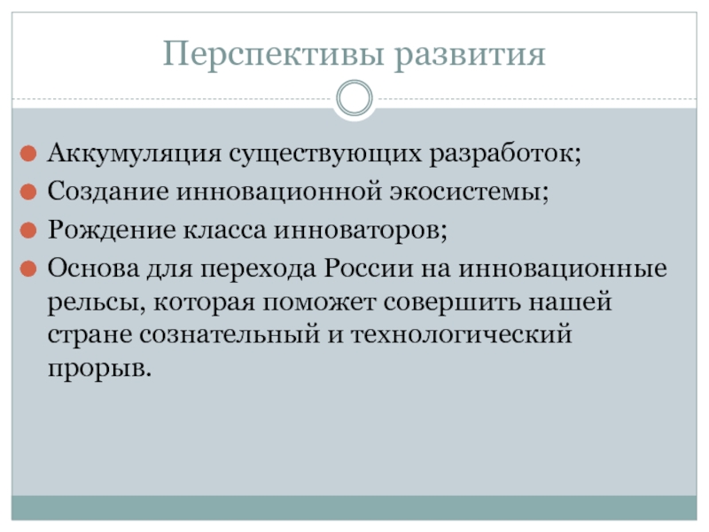 на инновационные рельсы, которая поможет совершить нашей стране сознательный и технологический прорыв.