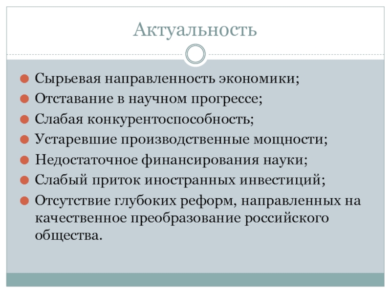 Отсутствие глубоких реформ, направленных на качественное преобразование российского общества.