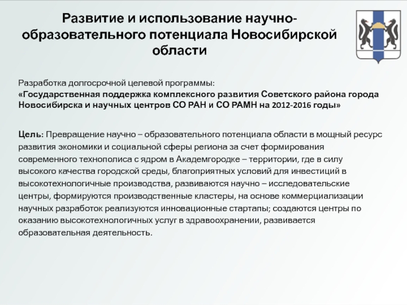 разработка долгосрочных программ развития деятельности центров научной концентрации, направленных на обеспечение инновационного развития и модернизацию экономики и социальной сферы;