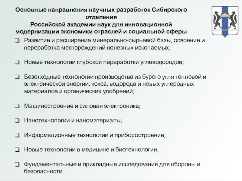 Развитие и расширение минерально-сырьевой базы, освоение и переработка месторождений полезных ископаемых;