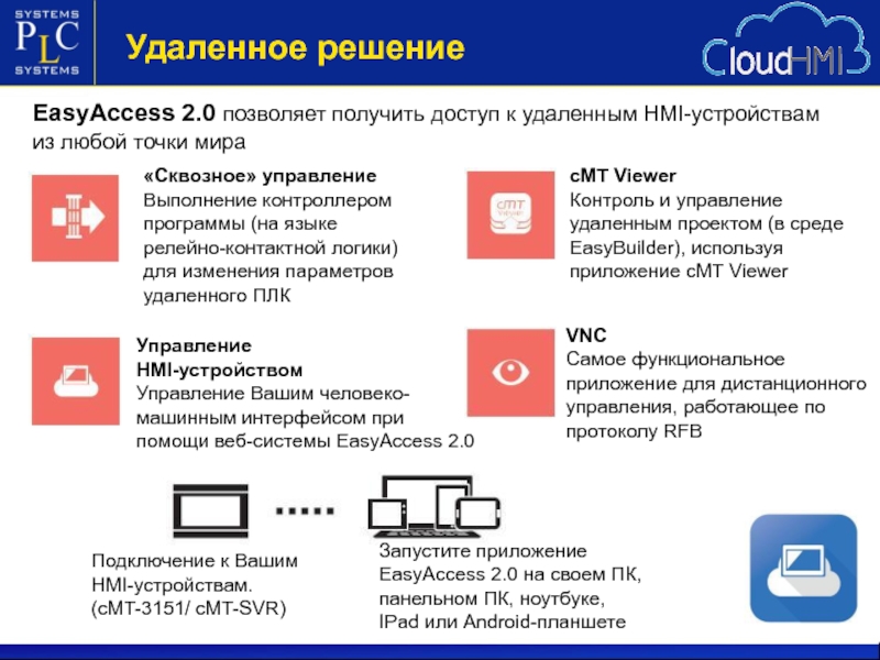 cMT – серия устройств с инновационной архитектурой человеко-машинного интерфейса (HMI) клиент/сервер, использующая «облачную» технологию.