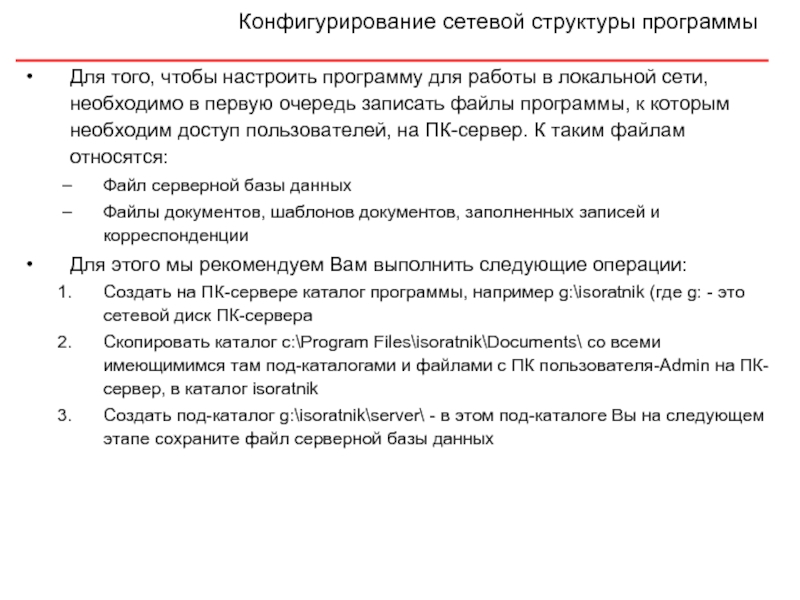 Все пользователи должны иметь полный сетевой доступ («чтение и запись») к каталогу g://isoratnik/server/