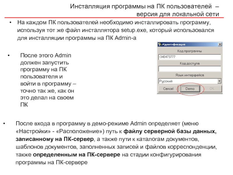 После этого Admin должен запустить программу на ПК пользователя и войти в программу – точно так же, как он это делал на своем ПК