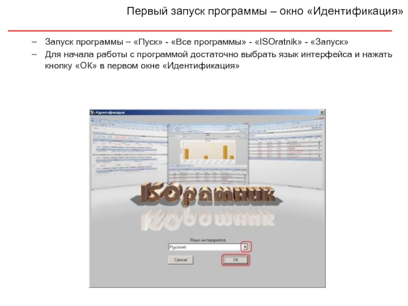 Пользователь выбирает себя в списке пользователей, вводит пароль, нажимает «ОК» и входит в программу