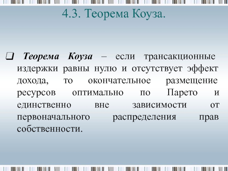 Право должно быть предоставлено той стороне, которая выкупила бы его при нулевых трансакционных издержках