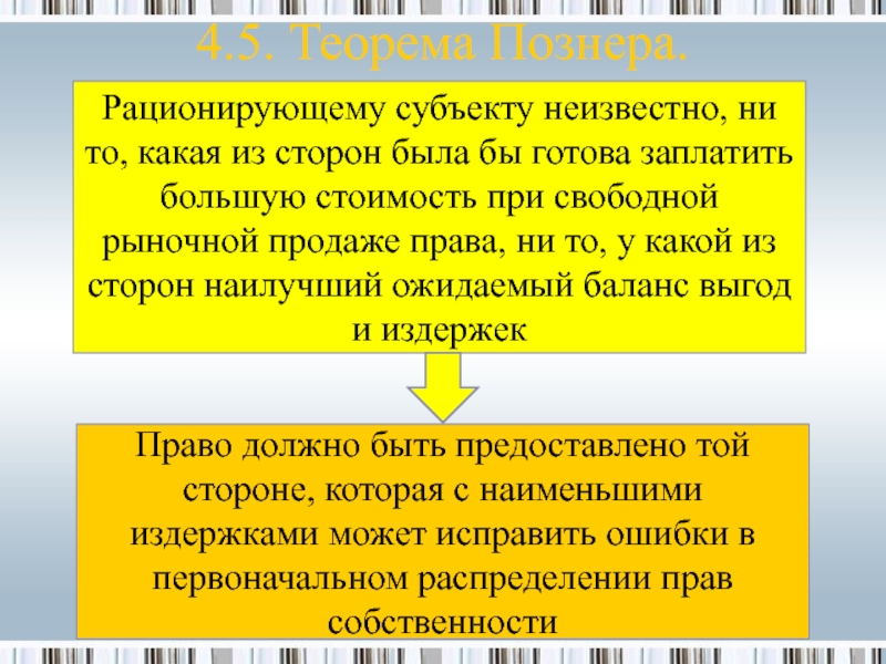 Право должно быть предоставлено той стороне, которая с наименьшими издержками может исправить ошибки в первоначальном распределении прав собственности