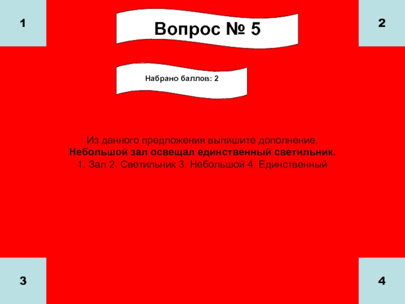 1. Зал 2. Светильник 3. Небольшой 4. Единственный