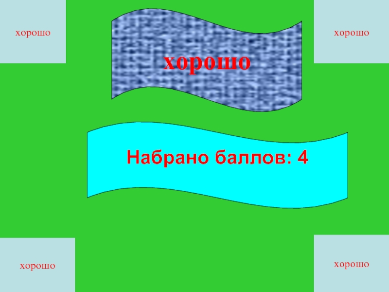 них имеет только один вариант правильного ответа. Используя кнопки в углах экрана, выберите тот вариант ответа, который, по Вашему мнению, является верным. Следующий экран будет зеленым, если ответ был точным, и красным, если Вы ошиблись. Текущее количество набранных баллов автоматически высвечивается под номером вопроса. За каждый правильный ответ начисляется один балл. Для получения отметки «отлично» нужно заработать пять баллов, «хорошо» - 4 балла, «удовлетворительно» - 3 балла. Итоговый результат и общее число набранных баллов вы узнаете, ответив на последний вопрос