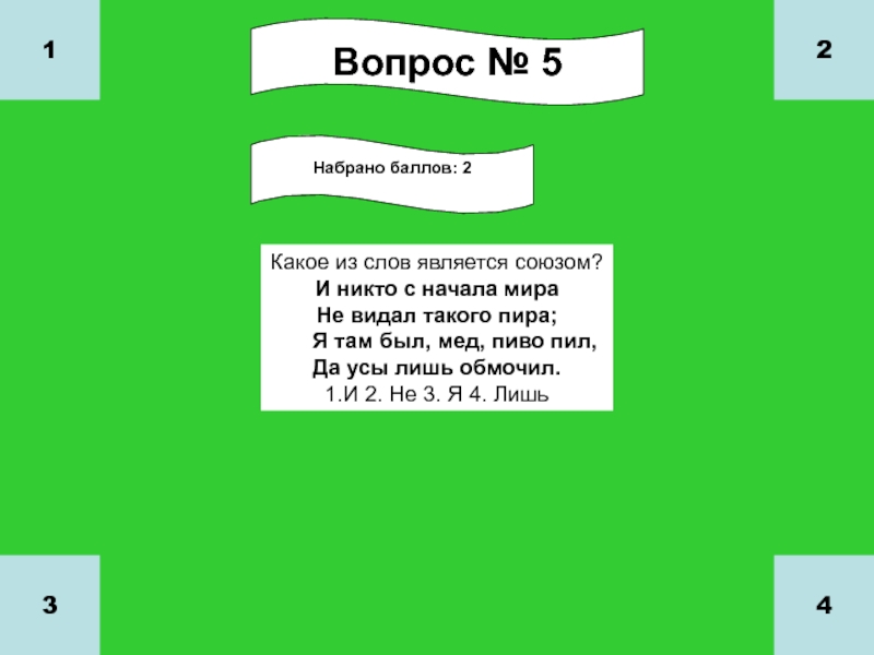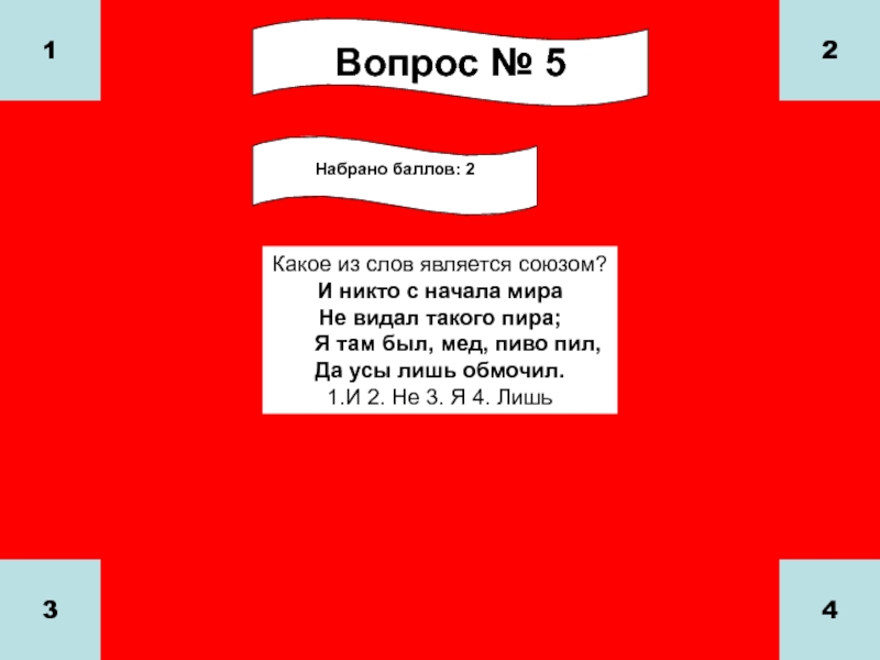 Вашему вниманию предлагается 5 вопросов. Каждый из