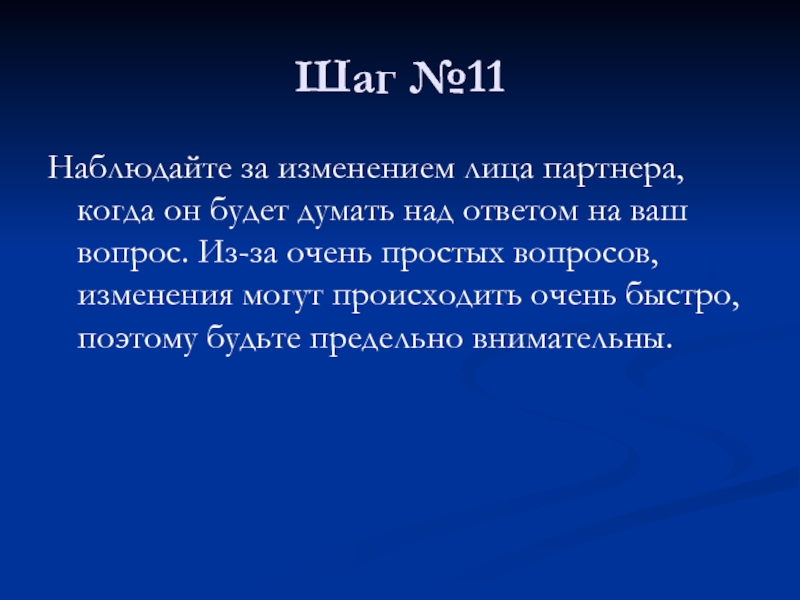 вашего партнера ДО ответа и ПОСЛЕ него, то можете проверить свои наблюдения, повторив шаги 7 и 8. Если не заметили, то повторяйте шаги 7 и 8 до тех пор, пока не заметите.