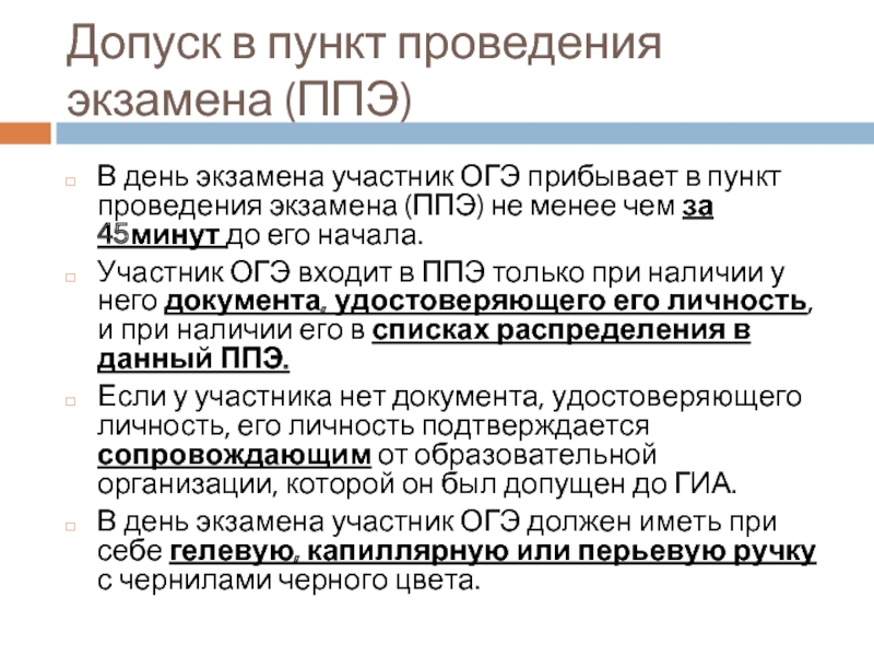 Слайд 7Допуск в пункт проведения экзамена (ППЭ)