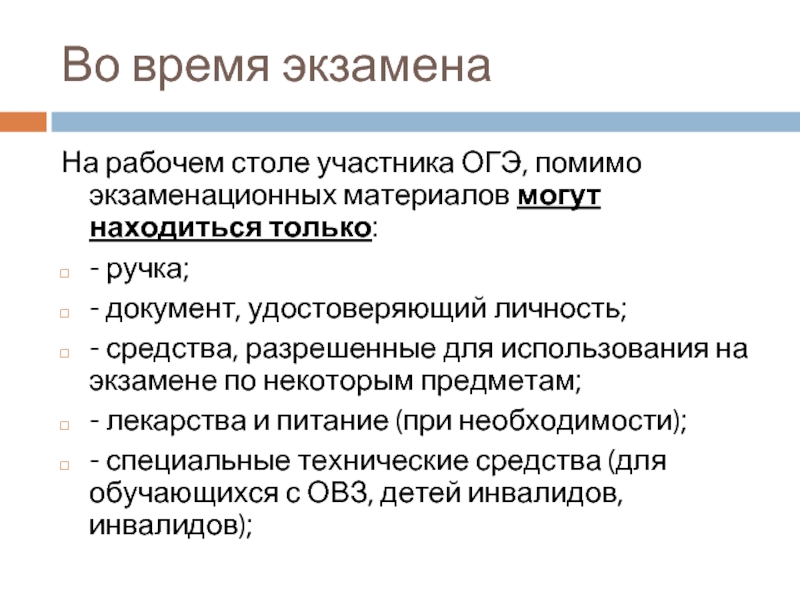 - средства, разрешенные для использования на экзамене по некоторым предметам;