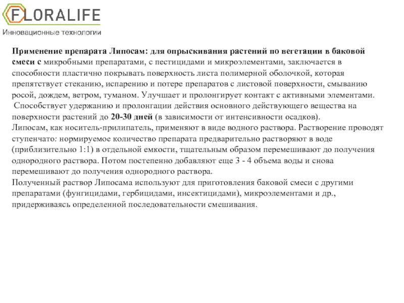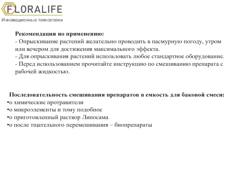 Последовательность смешивания препаратов в емкость для баковой смеси: